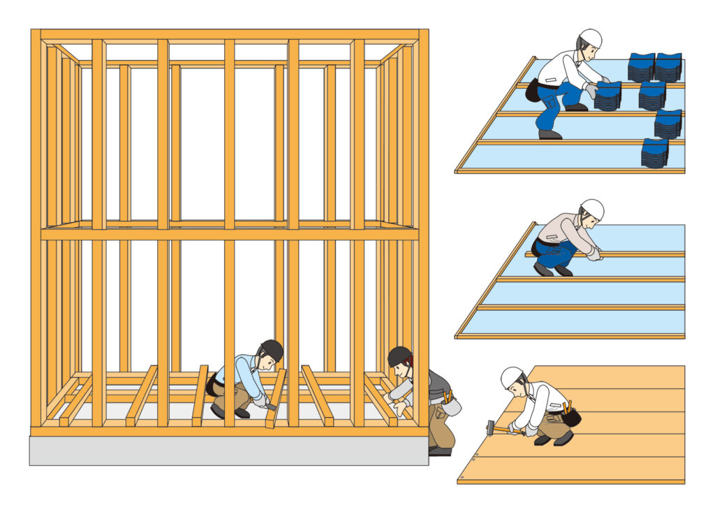 上棟とは、屋根の最も高い位置に棟木を取り付け、建物の骨組みが完成する工程です。この段階で家の全体像が見えてくるようになります。地域によっては工事の安全と無事に完成することを祈願する「上棟式」を行うこともあります。