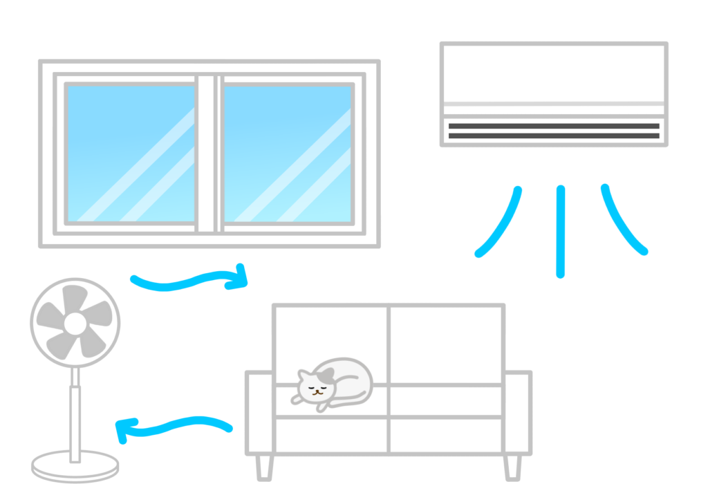 暖房のときは、暖かい空気を足元へ。冷房のときは、冷たい空気を上へ。これは、冷たい空気は下にたまり、暖かい空気は上にのぼる、という空気の性質を利用するためです。石巻市の冬は、床付近が冷えやすいのも特徴です。サーキュレーターや扇風機を併用すると、室内の温度のムラが減り、エアコンの負担も軽くなります。