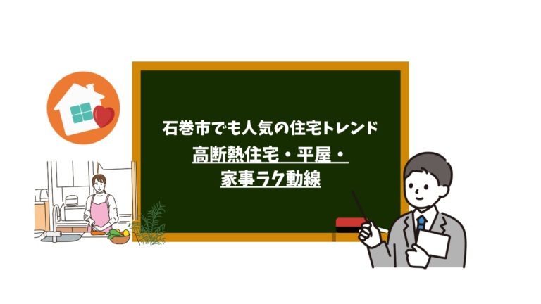 が中心です。しかし石巻市で本当に大切なのは、この地域で無理なく、長く、心地よく暮らせること。全国の流行を参考にしながらも、最終的に選ぶのは「家族の暮らしに合うかどうか」。石巻市で住宅をご検討中の方にとって、この記事が、これからの暮らしや住まいを見直すきっかけになれば幸いです。最後までお読みいただきありがとうございました。宜しければ関連記事「宮城で建てる注文住宅!地元で叶える理想の暮らし」も併せてご覧いただけますと幸いです。